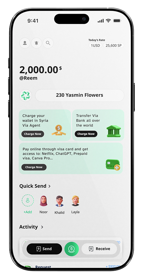 ندعم جميع العائلات السورية ورواد الأعمال بتكنولوجيا مالية من الجيل التالي — موصلين إياهم بالعالم كله من خلال هواتفهم المحمولة.